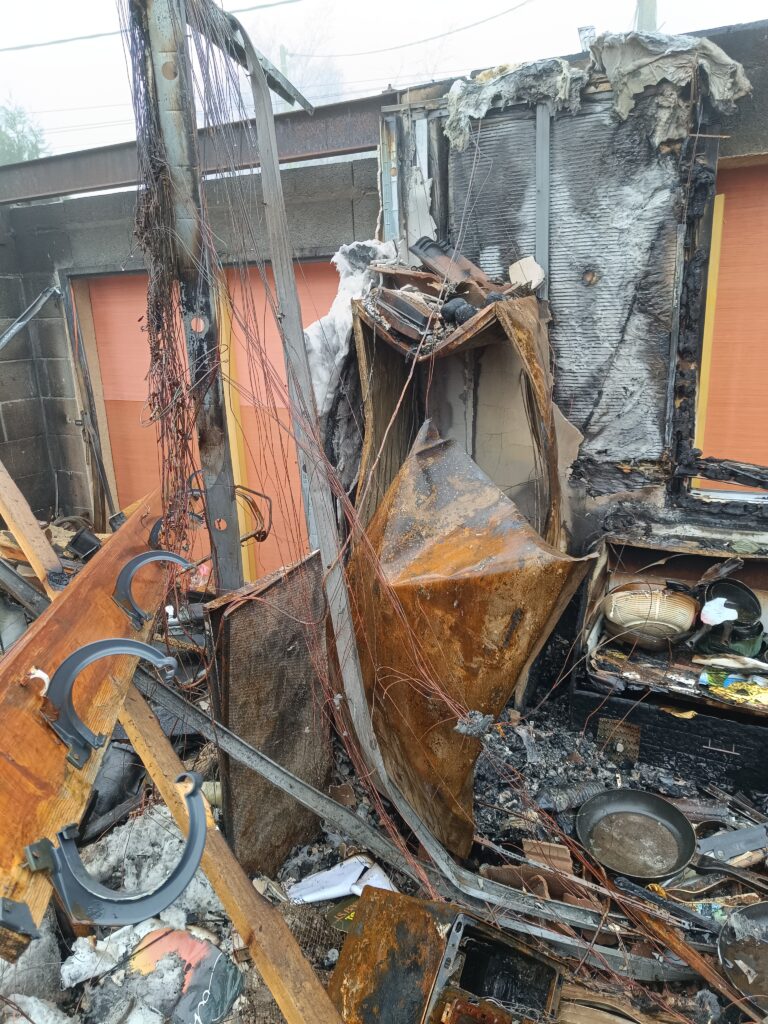 Notre équipe est intervenue à la suite d’un incendie survenu dans une maison individuelle occupée par un couple. Au moment du sinistre, Madame se trouvait seule dans le logement. C’est en percevant une odeur de brûlé provenant du garage qu’elle a identifié l’incendie. En ouvrant la porte du garage, elle a tenté de maîtriser les flammes à l’aide d’eau, sans succès. La présence de bonbonnes d’hélium ainsi que d’une batterie lithium dans le garage a provoqué une réaction violente, amplifiant instantanément l’intensité du feu. Les flammes se sont rapidement propagées à l’ensemble de l’habitation, causant d’importants dégâts matériels et la perte totale des biens assurés. L’enjeu majeur pour les assurés était double : assurer la sécurisation immédiate de la structure fortement fragilisée et organiser le relogement dans l’urgence.
