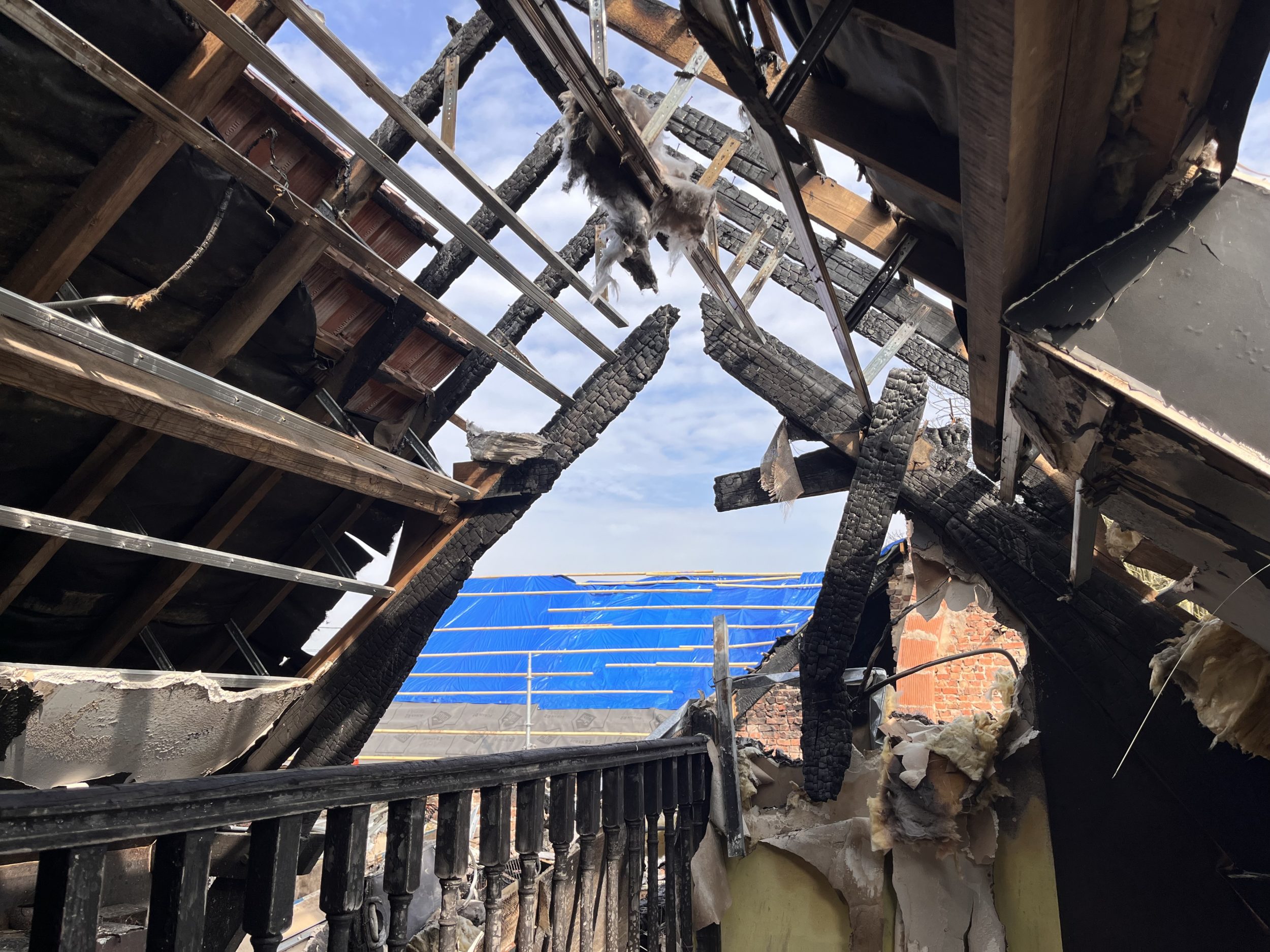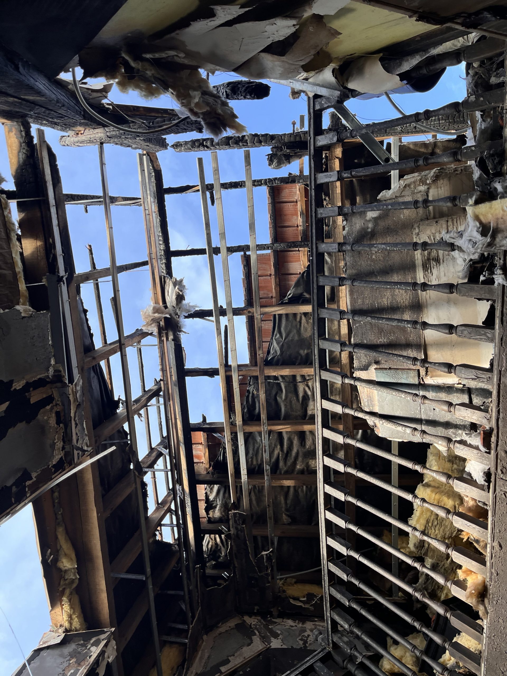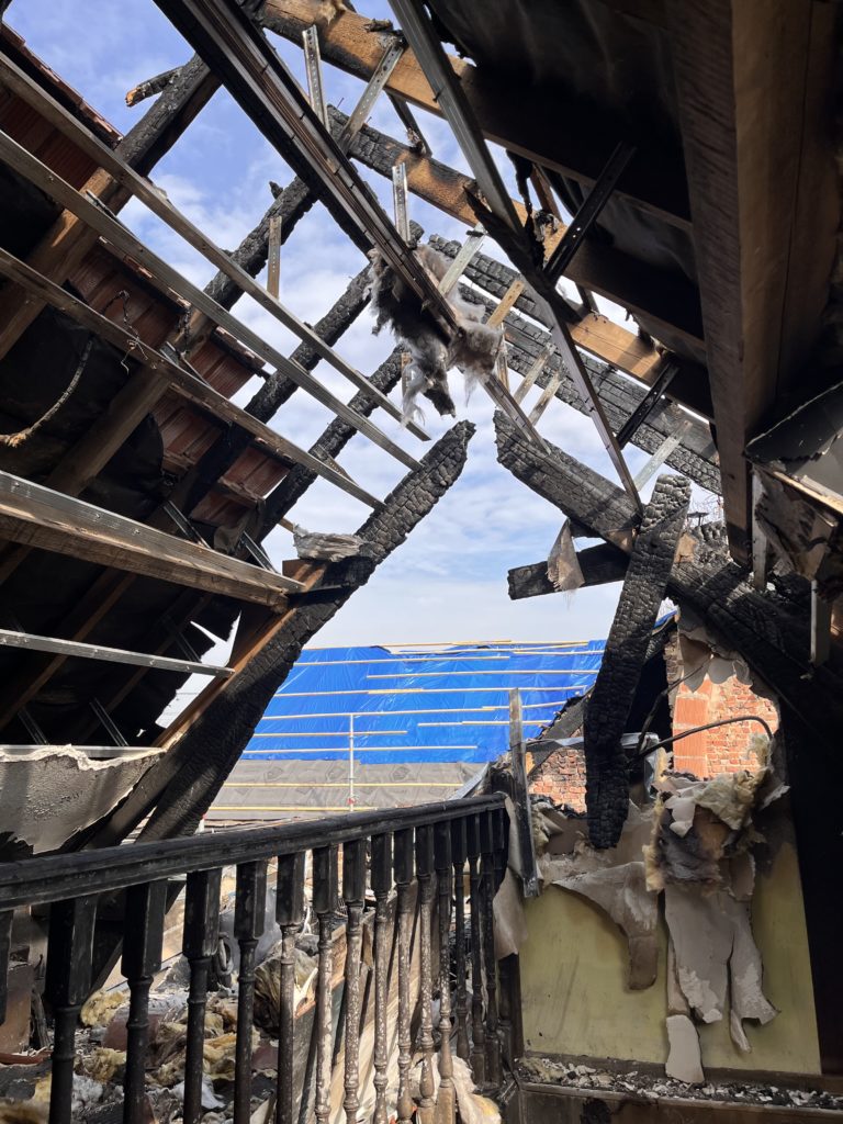 Dès notre arrivée sur place, nous avons pris en main l’organisation des premières étapes clés, telles que la coordination rapide avec les services d’urgence pour sécuriser l’accès au site, la mise en place immédiate d’un relogement d’urgence pérenne en tant compte des besoins du couple, le lancement de la phase de décontamination, avec des équipes spécialisées, afin de limiter les dégâts secondaires et préserver ce qui pouvait l’être. Malgré les zones rendues difficiles d’accès, notamment la partie nuit et dressing, située sous la partie effondrée de la toiture, nous avons établit un état des pertes précis, afin d’assurer une évaluation fidèle et défendable des pertes.
